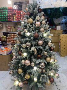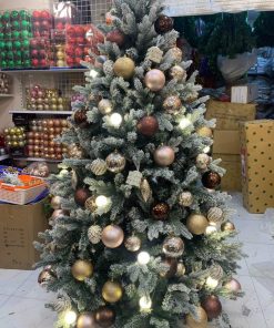 - Cây thông noel với tán lá làm từ nhựa PE, phủ tuyết trắng, giống cây thật, cảm giác tự nhiên, sang trọng, tán cây rộng, dày dặn, cân đối và đẹp mắt.